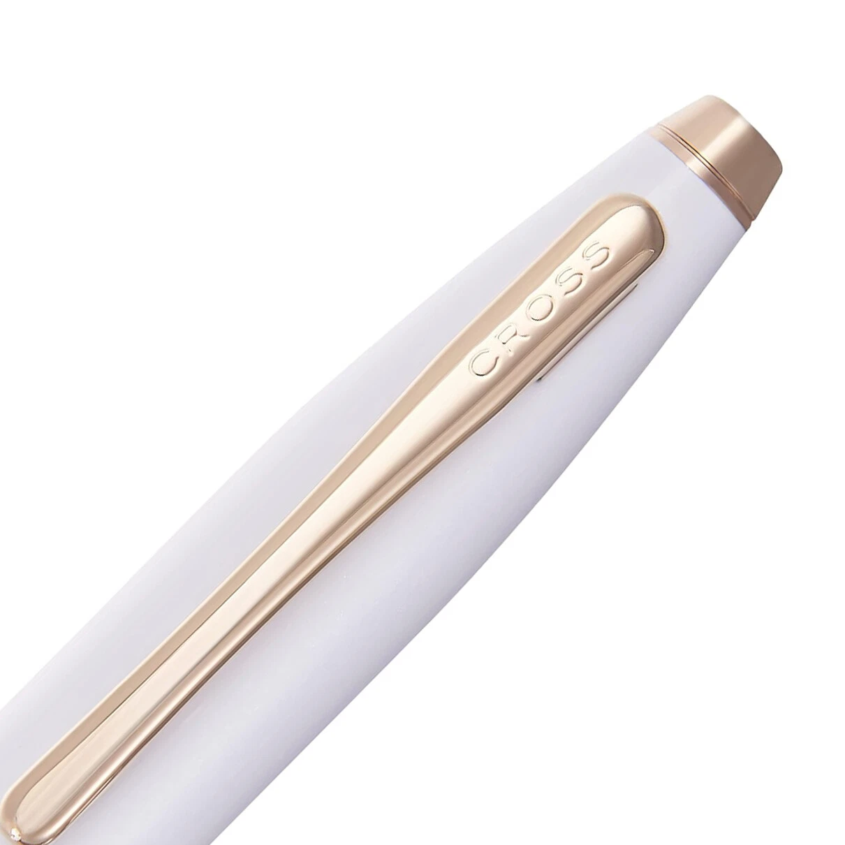 Substantial, yet streamlined. Traditional, yet on-trend. Cross Calais is an everyday favorite making smart new statements in style. With a tapered silhouette inspired by Art Deco design, Calais has an authoritative feel in hand. In a fine selection of finishes ranging from classic to contemporary, our collection invites a wonderful touch of luxury to the daily act of putting pen to paper. · Bold, tapered profile has a noteworthy presence · Wide variety of fine finishes from timeless to trendsetting · Premium gift box · Lifetime Mechanical Warranty About the Finish Pearlescent white lacquer Polished rose gold PVD appointments