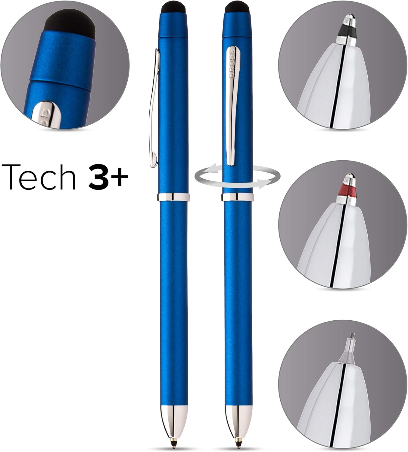 Cross Tech3+ Metallic Blue Multi-Function Pen with Chrome-Plated Appointments, Stylus Pen AT0090-8
