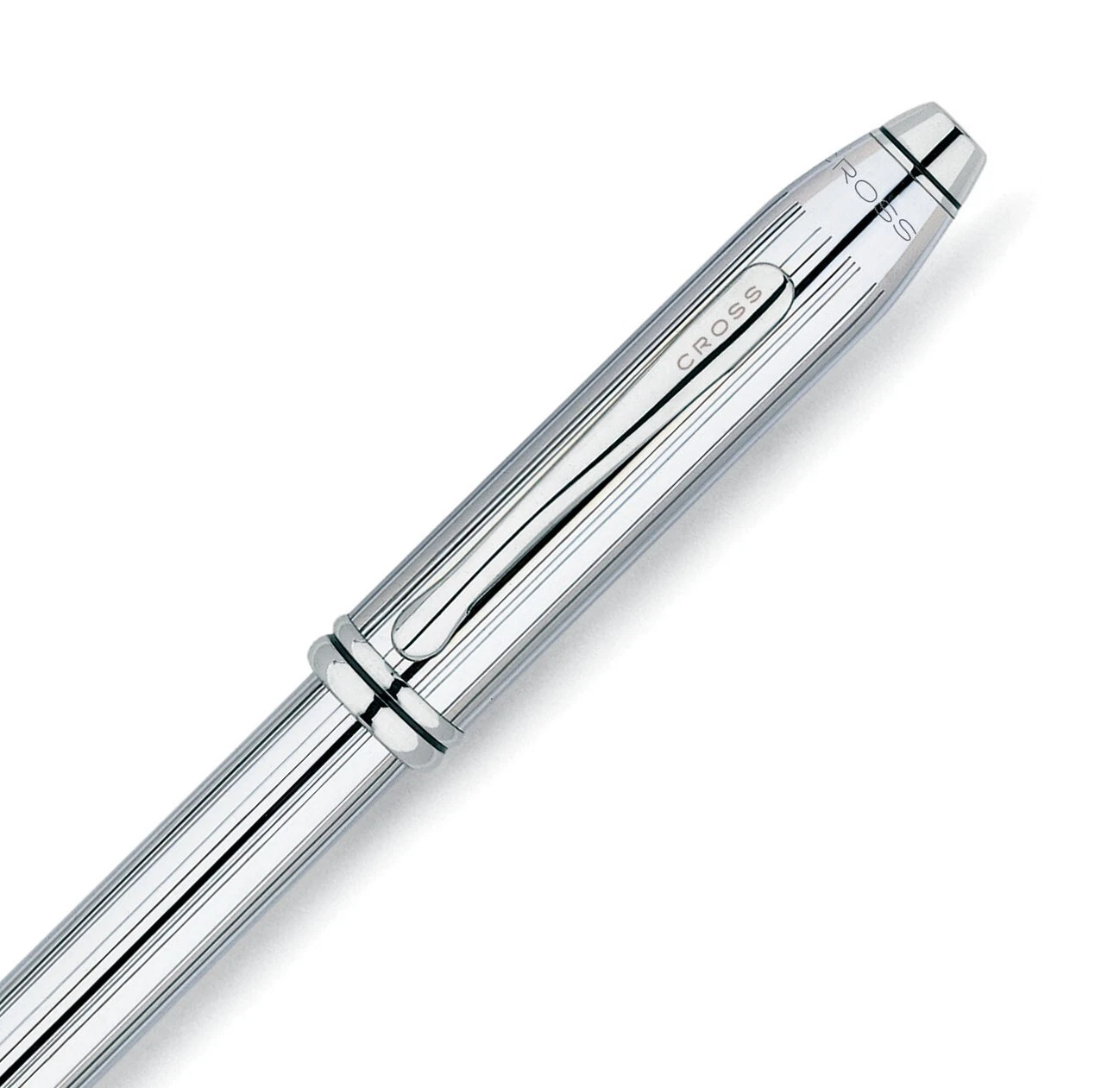 he Cross Townsend Lustrous Chrome Selectip Rollerball Pen is presented in pure silver with uncompromising craftsmanship and a bright chrome finish making the Cross Townsend Lustrous Chrome Selectip Rollerball Pen a selection of uncommon value (Length 5.75 inches). This pen features the Cross unique Selectip interchangeable writing technology which offers the choice of a silky smooth gel ink rollerball.